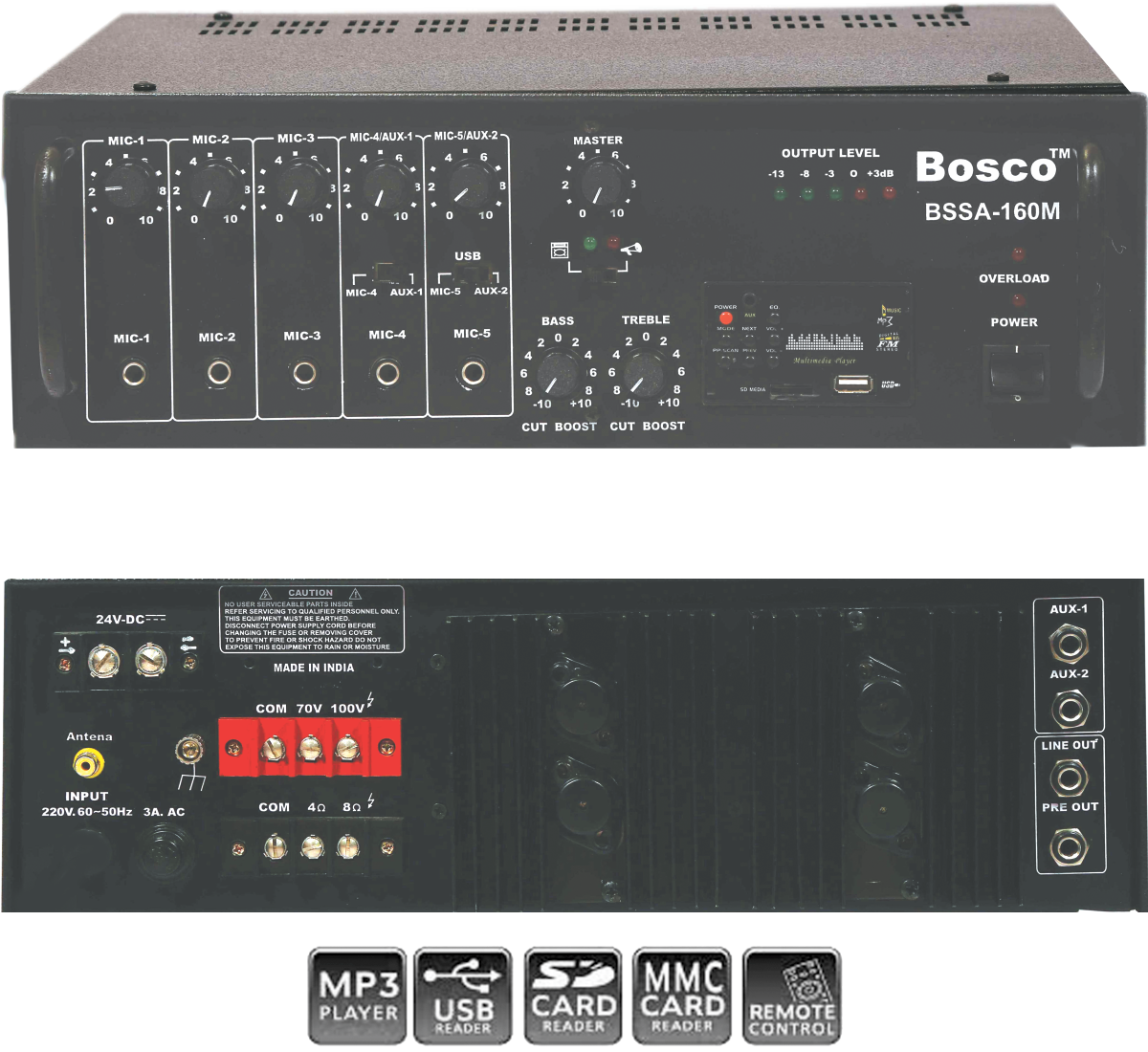 | Power Output | 160 W RMS @ 10%THD / 180W RMS Max. | ||